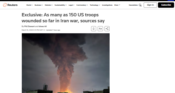 كشفت وكالة رويترز أن العدد الحقيقي للإصابات في صفوف الجنود الأمريكيين أكثر بكثير من الأرقام التي تعلنها واشنطن ويتجاوز الرقم الذي أعلنه الجيش الأمريكي في بداية تصريحاته بأكثر من عشرين ضعفاً.