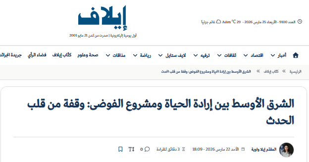 ونشرت صحيفة إيلاف السعودية المقالة التي ظهرت فيها ناطقة “جيش العدو” وكأنها تتحدث باسم دول الخليج في رسالة مقصودة في هذا التوقيت تعكس سياسة انحياز سعودية للكيان الصهيوني لا تقل في إجرامها عن حرب الإبادة “الإسرائيلية” في غزة وقصف جيش الكيان للبنان وإيران اليوم.