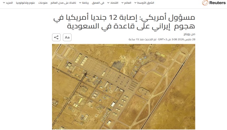 وأفَادت تقارير “وول ستريت جورنال” و”رويترز” أن الهجوم الذي نُفذ بمزيج من الصواريخ البالستية والطائرات المسيّرة أَدَّى إلى وقوع قتلى وإصابة ما لا يقل عن 12 جنديًّا أمريكيًّا، وصفت حالاتُ بعضهم بالخطيرة، وتدمير وإعطاب عدد من طائرات التزود بالوقود من طراز (KC-135) وطائرة إنذار مبكر (E-3 Sentry)، مَا جعل الضربةَ واحدةً من أخطر الاختراقات للدفاعات الجوية الأمريكية منذ بدء الحرب على إيران.