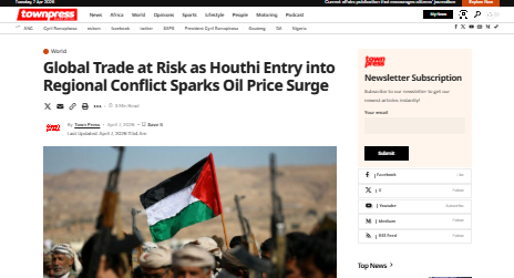 أكد موقع تاون برس الجنوب أفريقي أن الأهمية الاستراتيجية لمضيق باب المندب ازدادت بشكل دراماتيكي عقب قيام طهران بتقييد المرور عبر مضيق هرمز بأسلوب “الإدارة الذكية” الذي تتبعه السلطات الإيرانية.