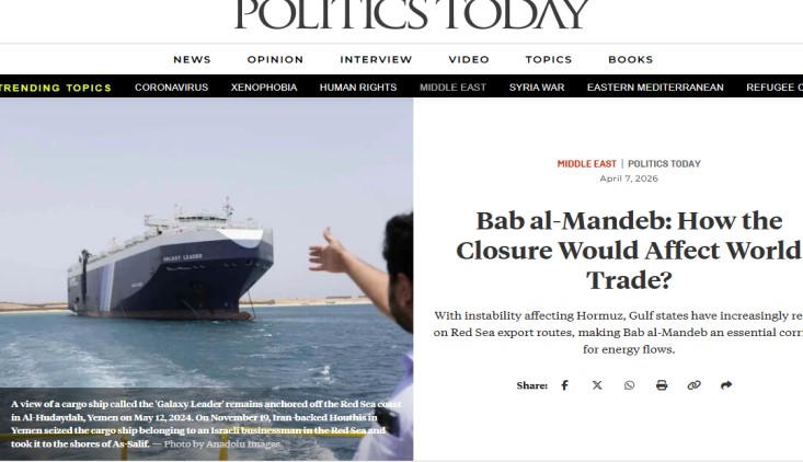 أكّـد تقريرٌ حديثٌ لموقع “بوليتيكس توداي” الأمريكيّ من أن إغلاق مضيق باب المندب سيؤدي إلى تداعيات كارثية على التجارة العالمية وأسواق الطاقة في ظل تصاعد التوترات الإقليمية وترجيح دخول البحر الأحمر والعربي ضمن المعترك لتثبيت وقف العدوان الأمريكي الصهيوني على عدد من دول المنطقة.