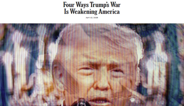 جزمت صحيفة “نيويورك تايمز” في افتتاحيتها الصادرة، أمس الأحد، أن الحربَ التي شنها الرئيس دونالد ترامب ضد إيران أَدَّت إلى إضعاف أمريكا بشكل غير مسبوق، وتسبّبت في سلسلة من الانتكاسات الاستراتيجية الكبرى.