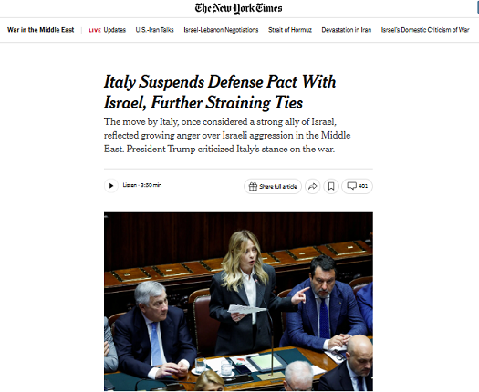 نيويورك تايمز: لماذا علقت إيطاليا اتفاقيه التعاون المشترك مع “إسرائيل”..!