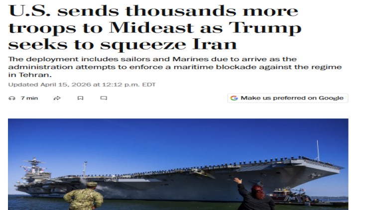 كشفت صحيفة واشنطن بوست أن أمريكا تستعد لإرسال آلاف الجنود الإضافيين إلى منطقة غرب آسيا، في تصعيد يسبق انتهاء الهُدنة مع إيران، وسط مساعٍ لزيادة الضغط العسكري والدفع نحو اتّفاق ينهي التوتر.