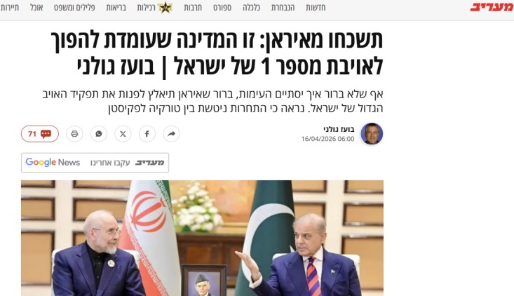 وعَـــدَّ المنافسةَ على لقب “العدوّ القادم” انحصرت بين أنقرة وإسلام آباد، واصفًا الدولتين بأنهما تمتلكان أنظمة تعتمد على القوة العسكرية وجماهيرية واسعة تتبنى مواقف حادة ضد كَيان الاحتلال.