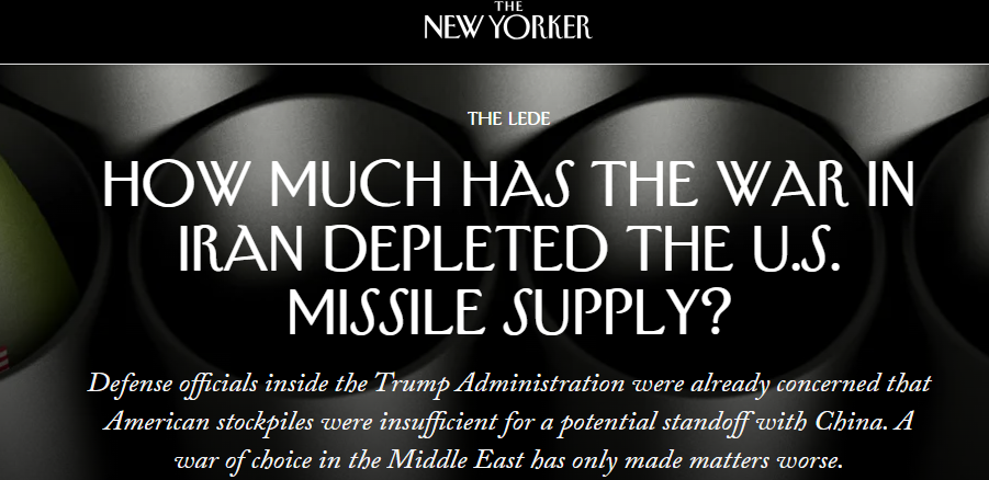 وأشار الى تساؤلاتٍ جدّية طفت على سطح الاحداث حول جاهزية واشنطن لحرب أمام القوى الكبرى كالصين وروسيا في وقتٍ اكدت الكثير من التقديرات الواقعية في واشنطن إلى أن الذخائر الأمريكية باهظة التكلفة وصعبة التعويض قد تنفد خلال أسابيع في حال عودة الحرب مع إيران بوتيرة الـ40 يوماً أو اندلاع صراع واسع مع الصين أو روسيا.