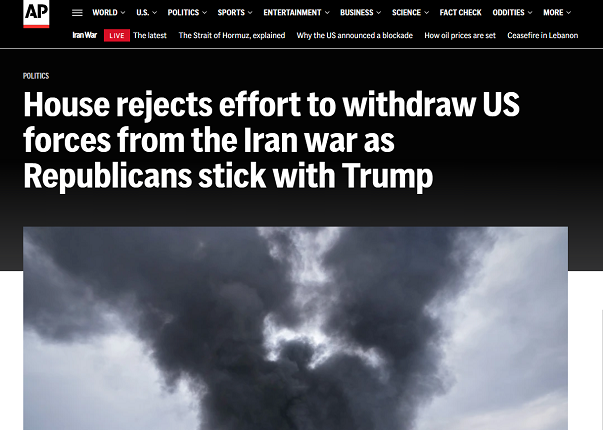 تقول وكالة اسوشيتد برس الأمريكية أن مجلس النواب الأمريكي صوّت لصالح رفض قرارٍ يُلزم الرئيس دونالد ترامب بسحب القوات الأمريكية من الحرب على إيران، لكن الإعلام الأمريكي لم يركز على أن التصويت جاء بفارق صوتٍ واحدٍ فقط، ما يعني ان صوتاً واحدً في مجلس النواب الأمريكي كاد أن ينهي مغامرة ترامب في إيران ويعيد البحرية الأمريكية ادراجها وهي تجر اذيال الهزيمة في مغامرةٍ لم تحقق أيّاً من أهدافها المرسومة غير التدمير والقتل.