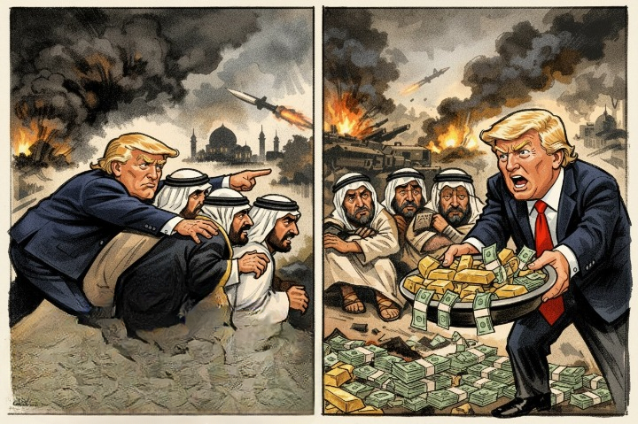 لا جديد في ما قاله الرئيس الأمريكي بشأن الدول التي يجب ان تدفع تكاليف مغامرته الخاسرة في إيران.