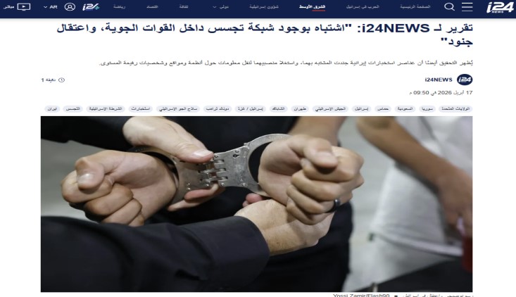 كشفت وسائل إعلام عبرية عن قضية تجسس داخل سلاح الجو الإسرائيلي، يُشتبه في ارتباطها بجهات تابعة لـإيران، في تطور يسلّط الضوء على تصاعد الحرب الاستخباراتية بين الطرفين.