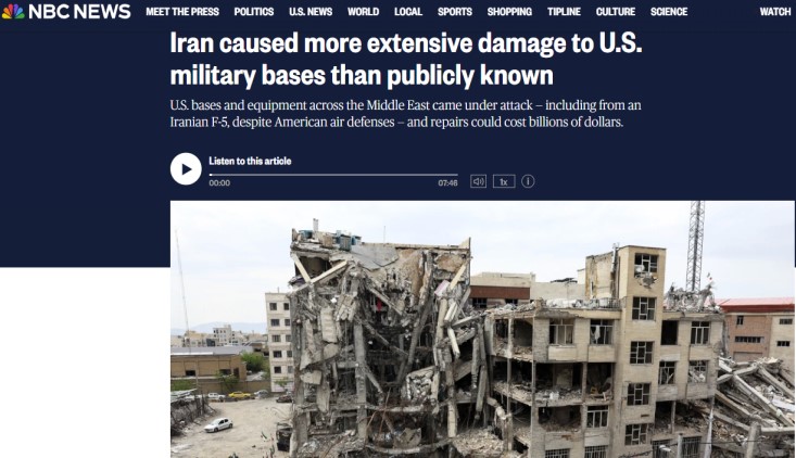 تكشفُ شبكةُ “إن بي سي نيوز” الأمريكية، في تقرير استقصائي نشرته اليومَ الأحد، أن حجمَ الأضرار التي أحدثتها الضرباتُ الإيرانية بالقواعد العسكرية الأمريكية في منطقة الخليج خلال عدوان الأربعين يومًا يفوق بكثير ما اعترفت به إدارةُ ترامب.