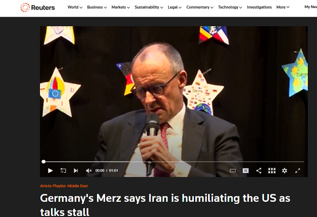 قال المستشار الألماني فريدريش ميرتس، إن القيادة الإيرانية تُذل أمريكا وتجبر المسؤولين الأمريكيين على السفر إلى باكستان ثم المغادرة دون نتائج.